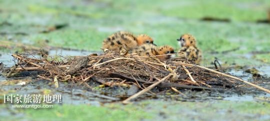 那木斯萊湖上一個(gè)鳥巢內(nèi)的雛鳥(8月3日攝)。