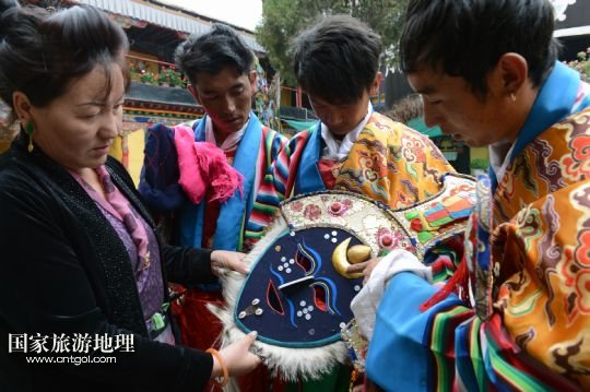 組建戲團(tuán)十多年,如今的瓊達(dá)已經(jīng)44歲了,孫子丹增覺美已經(jīng)兩歲多。8月6日,甲熱村里古老的覺木隆寺舉行雪頓節(jié)曬佛慶典,藏戲團(tuán)的演出自然是慶典必不可少的內(nèi)容。8日劇團(tuán)更要趕赴羅布林卡,參加一年最重要的演出。即使在這樣繁忙的時(shí)候,瓊達(dá)仍然承擔(dān)著帶孫子的任務(wù)。瓊達(dá)的兒女都沒有接手藏戲團(tuán)的打算,但是小小年紀(jì)的丹增覺美卻已經(jīng)展現(xiàn)出了對(duì)藏戲的興趣,這或許為憂心村里藏戲團(tuán)傳承的瓊達(dá)帶來了一絲安慰。 /新華社記者 宋振平 曾毅 攝影報(bào)道