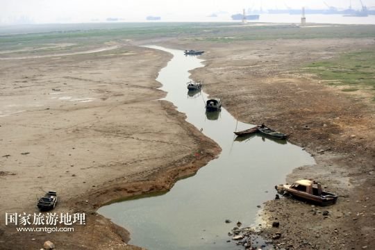 國家旅游地理 江西九江10月19日訊 10月19日,大批船只??吭诘退坏嫩蛾柡鞫疾俏鞲劭凇.?dāng)日,我國最大淡水湖鄱陽湖跌破10米的枯水位大關(guān),提前進入枯水期,這將對鄱陽湖濕地植被生長以及候鳥與野生魚類越冬造成影響。江西省水文局負(fù)責(zé)人介紹,星子站水位在10米以下就意味著鄱陽湖進入枯水期。受近期江西境內(nèi)降雨偏少、入湖水量減少等因素影響,19日10時,鄱陽湖星子站水位跌至9.98米,比同期多年均值偏低約4米。