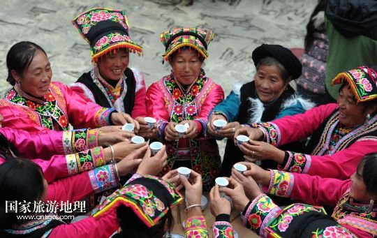 國(guó)家旅游地理 四川阿壩11月2日訊 11月2日,身著節(jié)日盛裝的四川省阿壩州汶川縣龍溪鄉(xiāng)村民們舉杯迎接羌?xì)v新年的到來(lái)。當(dāng)日,四川省阿壩州汶川縣龍溪鄉(xiāng)舉行傳統(tǒng)儀式迎接即將到來(lái)的羌?xì)v新年。今年的11月3日農(nóng)歷十月初一是羌?xì)v新年,這是羌族一年中最為隆重的“慶豐收、送祝福、祈平安”的節(jié)日,按民間習(xí)俗,過(guò)羌年時(shí)要還愿敬神,全寨人歡聚一堂,吃團(tuán)圓飯,共慶佳節(jié)。 /新華社發(fā)(何海洋 攝)