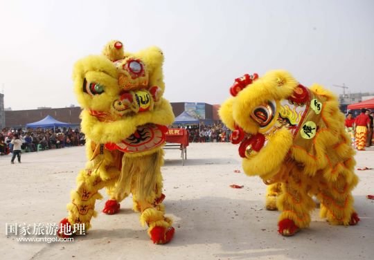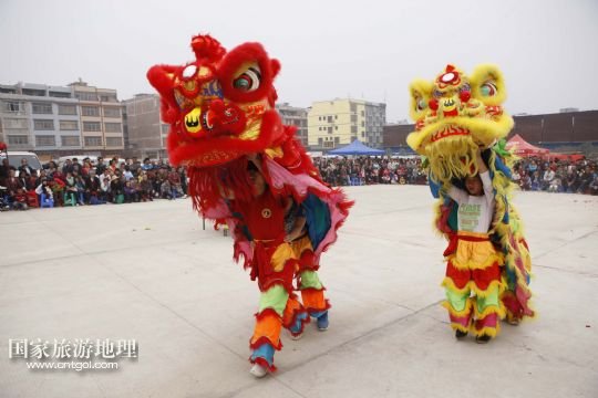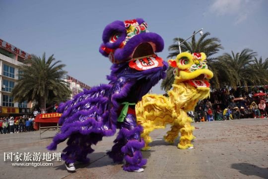國家旅游地理 廣西來賓2月5日訊 2月4日,廣西象州縣的農(nóng)民舞獅隊在參加獅王爭霸賽。春節(jié)期間,廣西壯族自治區(qū)來賓市象州縣舉行獅王爭霸賽,來自該縣的32支農(nóng)民舞獅隊一展技藝、爭奪獅王,為當?shù)厝罕姭I上一場精彩的民俗文化大餐。 /新華社發(fā)(龔堅 攝)