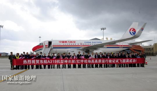 國家旅游地理 湖北神農(nóng)架4月28日訊 4月28日,試飛成功后機(jī)組人員在飛機(jī)前合影留念。當(dāng)日,東航A319機(jī)型在神農(nóng)架紅坪機(jī)場通過高高原運(yùn)行驗(yàn)證,試飛成功。神農(nóng)架機(jī)場海拔高度2580米,是華中地區(qū)海拔最高的機(jī)場,將于5月8日正式通航,首飛東方航空公司的上海—武漢—神農(nóng)架航線。從武漢到神農(nóng)架的旅途時間將由過去乘汽車9小時縮短至50分鐘。 /新華社記者 郝同前攝