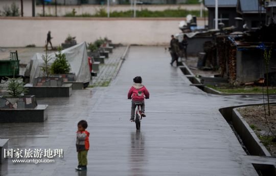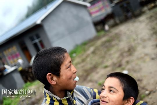 國家旅游地理 西藏日喀則7月19日訊 7月17日,孩子在達曼村內(nèi)玩耍。位于西藏吉隆縣吉隆鎮(zhèn)的達曼村,居住著近兩百名達曼人,他們是尼泊爾人的后裔。六七代人之前,達曼人的前輩從尼泊爾遷徙至此,成為“沒有國籍的人”,只能靠給當?shù)厝舜蚨坦っ銖姸热?,孩子也無法接受教育。