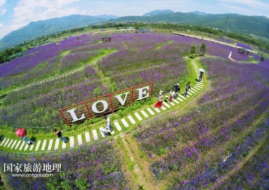 國家旅游地理 浙江溫州6月16日訊 6月16日,在浙江省溫州市平陽縣山門現(xiàn)代農(nóng)業(yè)園,游客徜徉在馬鞭草花海里。花海里豎立的一個(gè)“LOVE”造型格外醒目。新華社發(fā)(蘇巧將 攝)