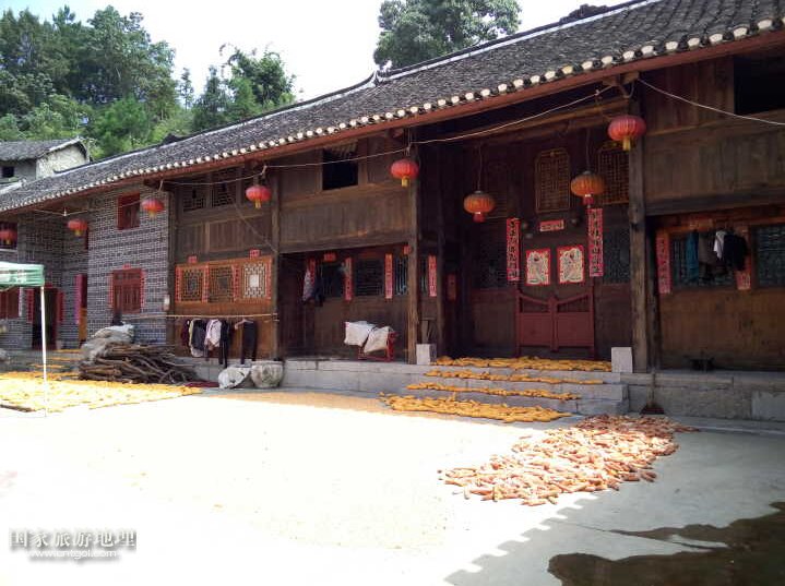國家旅游地理 貴州黔南8月28日訊 (記者 萬棋民 攝影報道) 上圖是在黔南貴定縣的音寨,音寨是天下布依第一寨。音寨的民居依山而建,一層一層往山上延伸。從圖中可以看到,音寨民居一半是木制結構,另一半新建的則是磚石材質。這種新與舊的連接是兩個時代的接軌,反映了改革開放前與改革開放后隨著經(jīng)濟的發(fā)展,少數(shù)民族居民的居住環(huán)境和生活水平得到了極大的提升。在圖片右邊的木制房子大門的正上方,刻著三塊密密麻麻的字,上面刻的是毛澤東語錄,而且不只這一家的木制房子上刻有毛澤主席語錄,可以看出當?shù)鼐用駥γ飨木磹壑椤?br />