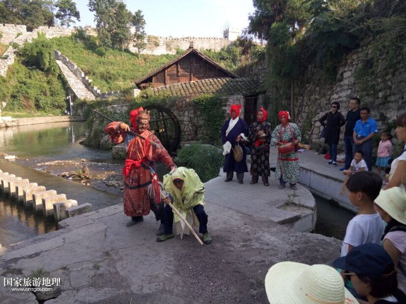這是福泉民間老藝人在表演福泉陽戲《二郎鎖孽龍》。福泉陽戲,所謂陽戲是指唱給活著的人聽的;也有陰戲,便是唱給死去的人聽的。陽戲主要有兩種功能,一種是娛樂,另一種便是還愿納吉,意思是之前向天神祈求的事情實現(xiàn)了,于是便唱起陽戲向天神還愿,同時也向天神祈求吉祥。福泉老藝人在表演陽戲的時候,雖然言語不通,但依然可以感受到陽戲所具有的獨特魅力,以及陽戲中所蘊含的民俗文化。