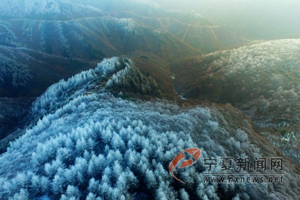 12月8日16時(shí)許,寧夏固原是六盤(pán)山隆德縣與涇源縣交界處突現(xiàn)霧凇,美麗的霧凇將山川樹(shù)木點(diǎn)綴的晶瑩剔透。 寧夏新聞網(wǎng)記者 祁瀛濤 攝