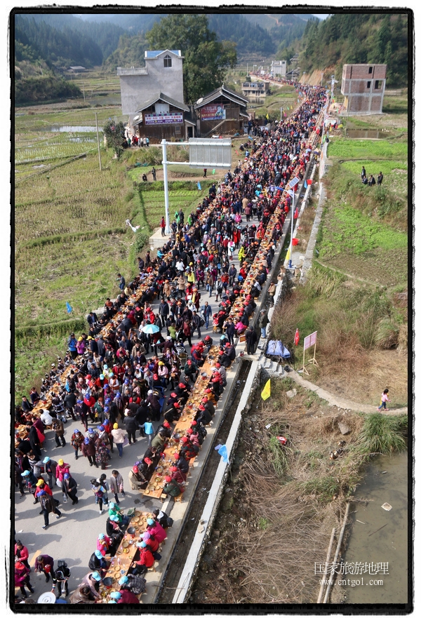 黔東南黎平萬(wàn)人長(zhǎng)桌宴1700張桌子長(zhǎng)3.7公里刷新紀(jì)錄