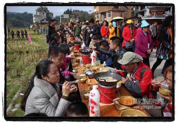 今年黎平侗年節(jié),除了延續(xù)亙古以來(lái)老百姓過侗年的各項(xiàng)傳統(tǒng)習(xí)俗活動(dòng)外,還有“天下侗家年”大型侗族史詩(shī)情景歌舞展演、侗族萬(wàn)人長(zhǎng)桌宴、招商引資推介會(huì)、七彩田園采摘體驗(yàn)、百村集市商品展銷、侗文化研討會(huì)、楊再思文化交流研討會(huì)等多項(xiàng)主題活動(dòng),其中,主打主推的“最大合攏宴”(萬(wàn)人長(zhǎng)桌宴)品牌,得到基尼斯紀(jì)錄總部到現(xiàn)場(chǎng)認(rèn)定,以1700桌合攏宴,總長(zhǎng)3.7公里,10380人同桌就餐,創(chuàng)歷史之最,成功載入《基尼斯紀(jì)錄大全》,吸引數(shù)萬(wàn)旅游客到場(chǎng)親自見證、參與、感受和體驗(yàn)這一千載難逢,氣勢(shì)恢宏的盛況。